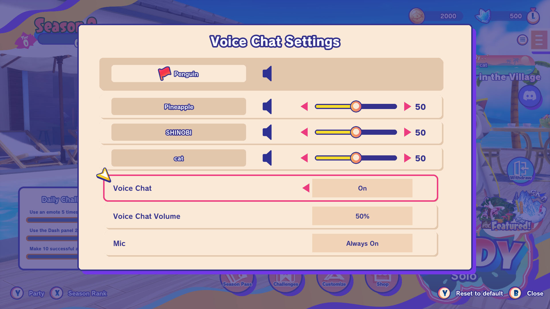 In the voice chat settings, you can adjust the volume and change microphone input options.