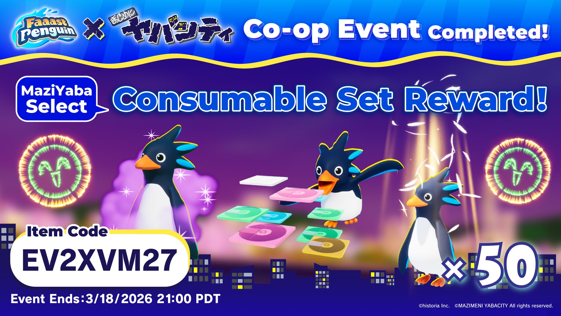 To celebrate reaching 3,000,000 attacks on the Yaba Seals, we’re giving away a Consumable Set!