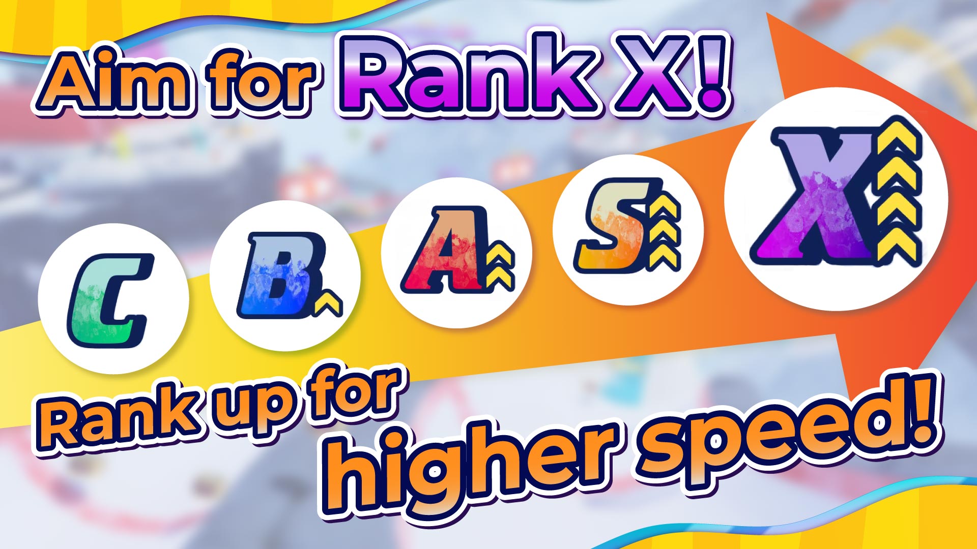 Your Run Rank increases based on the points you earn from tricks, boosting your base speed. The highest rank is X!