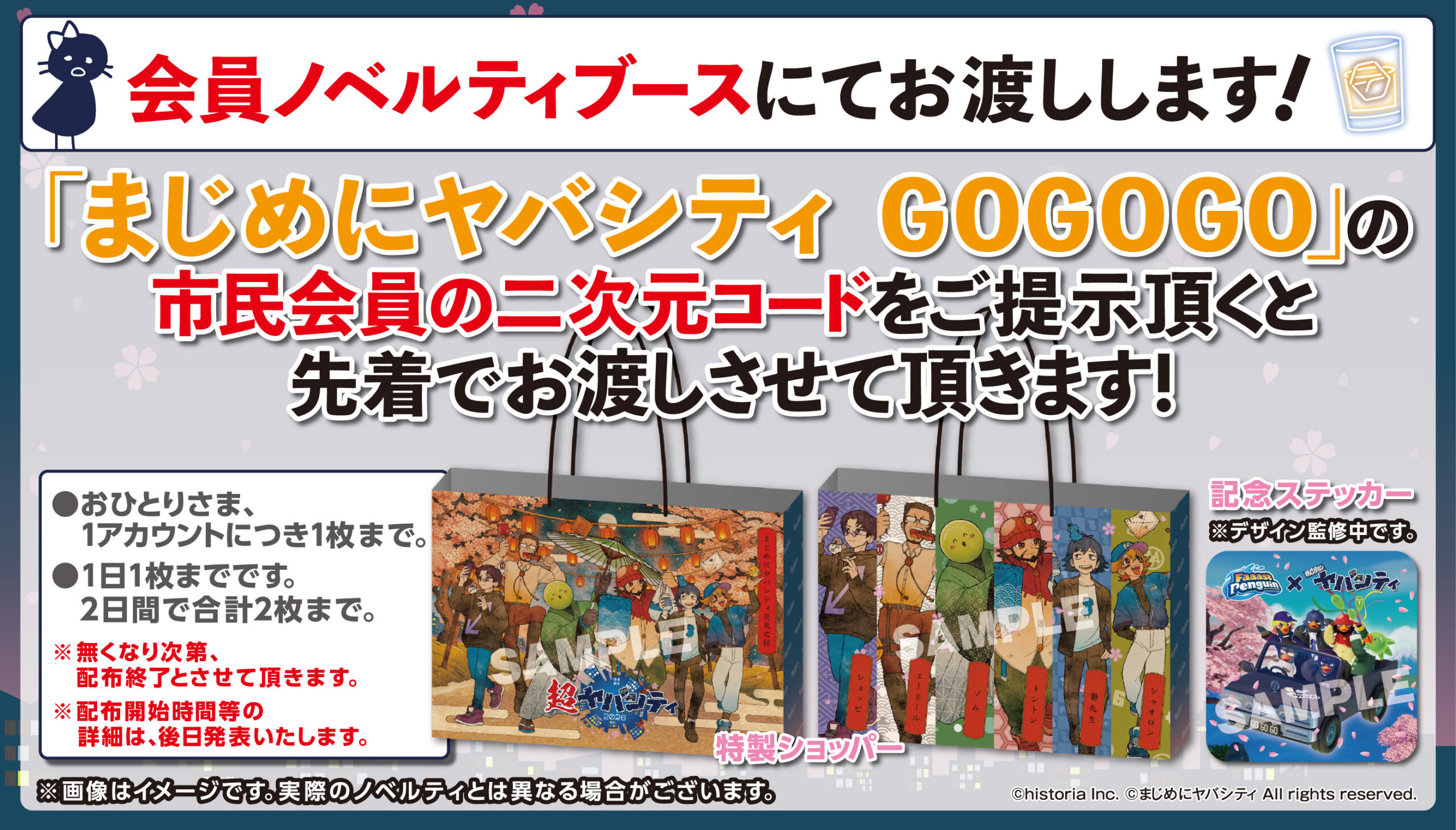 ※オリジナルペンギンステッカーは、市民会員向けコラボ記念ステッカーとは異なります。まじめにヤバシティコラボスキンの絵柄ではありません。
