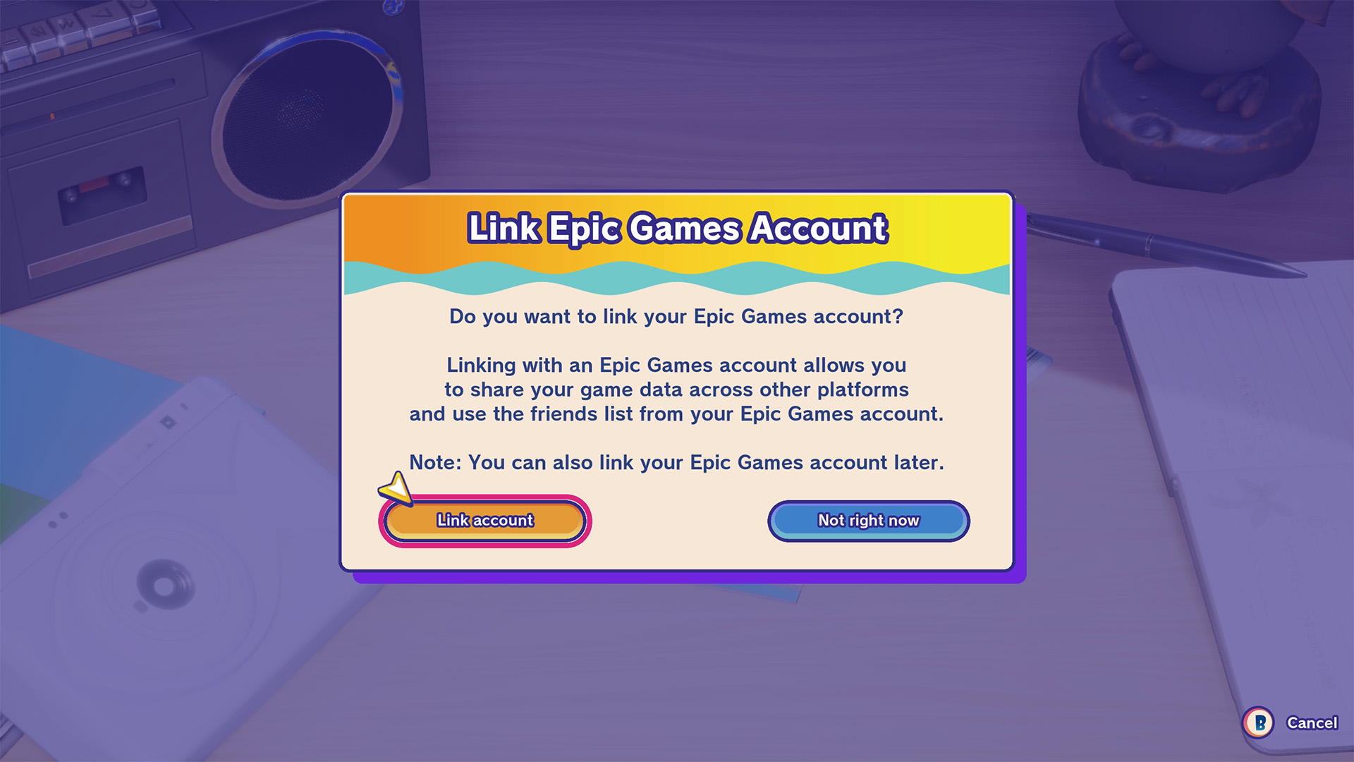 If you link an Epic Games account, you can use the same game data across multiple platforms (cross-save).