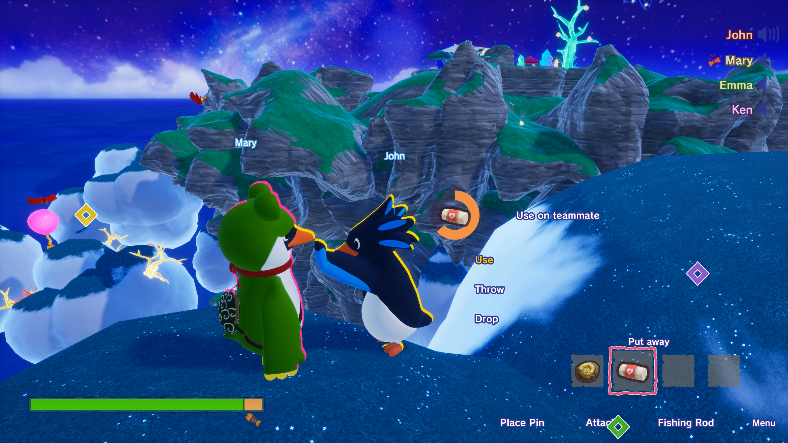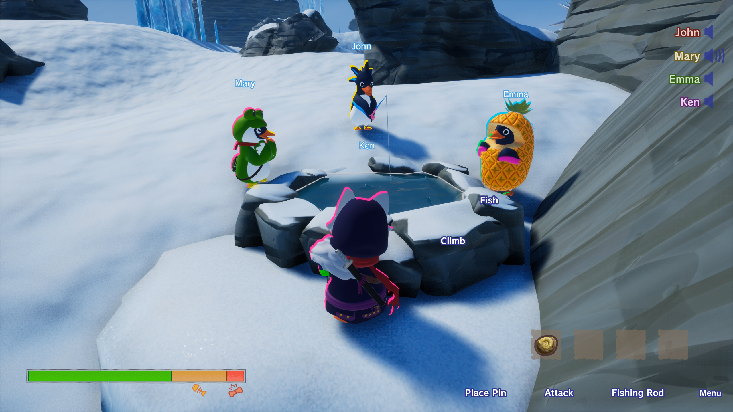 Climb icy walls with an ice axe and sometimes use a fishing rod to save teammates in trouble as you head for the summit.