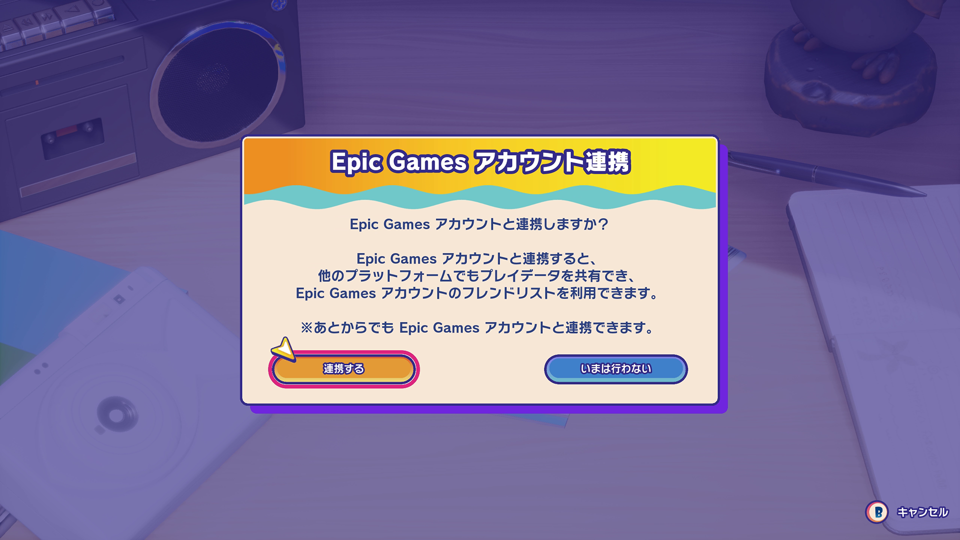※Epicアカウントとの連携を行うと、同じゲームデータを使って複数のプラットフォームで遊ぶことができます。