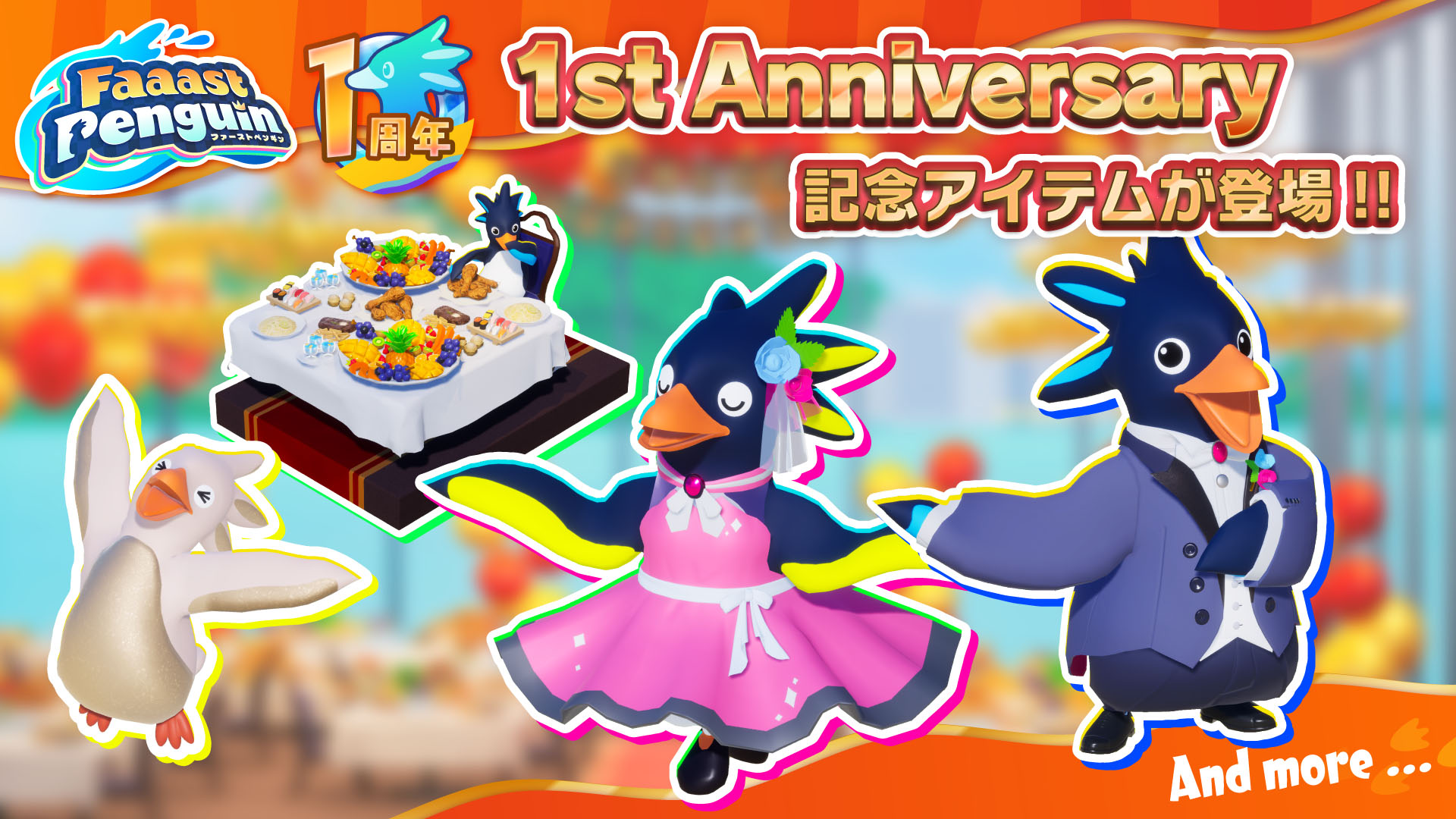 「1周年記念ドレス」や「1周年記念タキシード」「ごちそうを食べつくせ!」などの限定アイテムがショップに登場。みんなでパーティーを楽しんじゃおう!