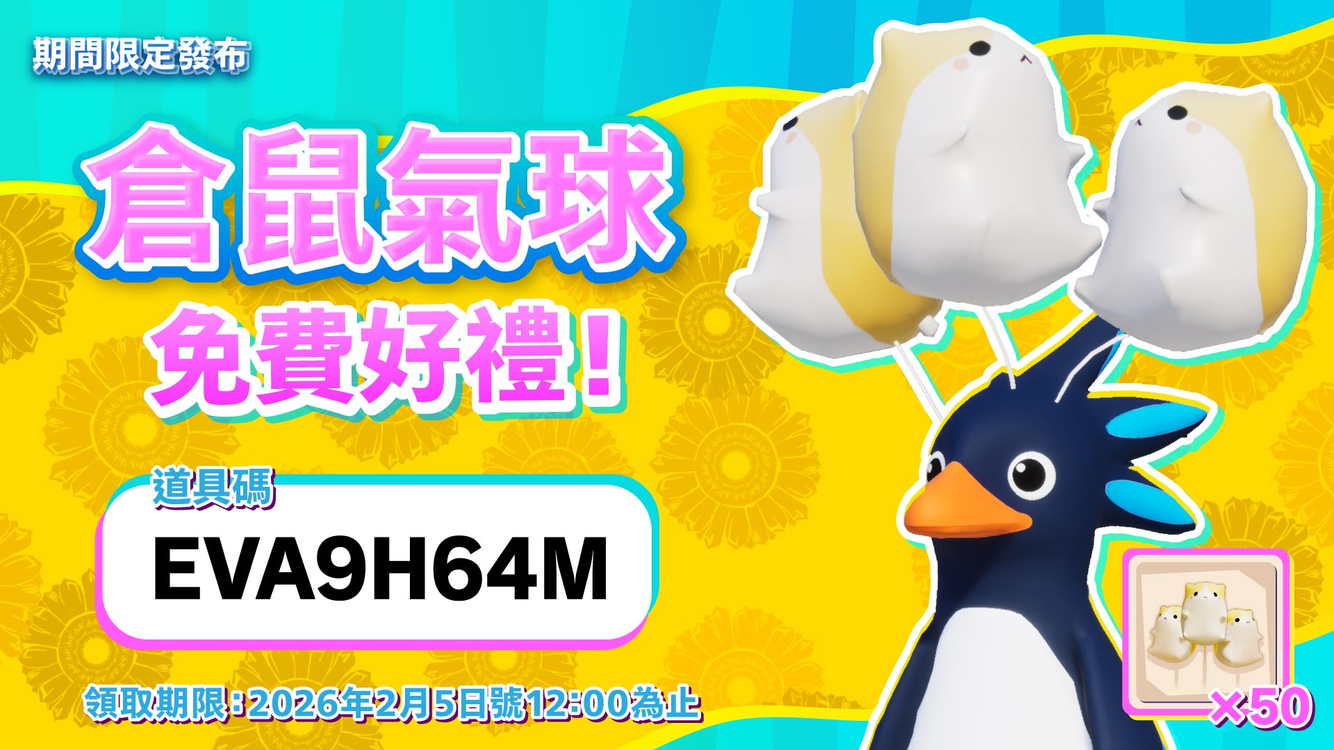 期間限定發布「倉鼠氣球」免費好禮!