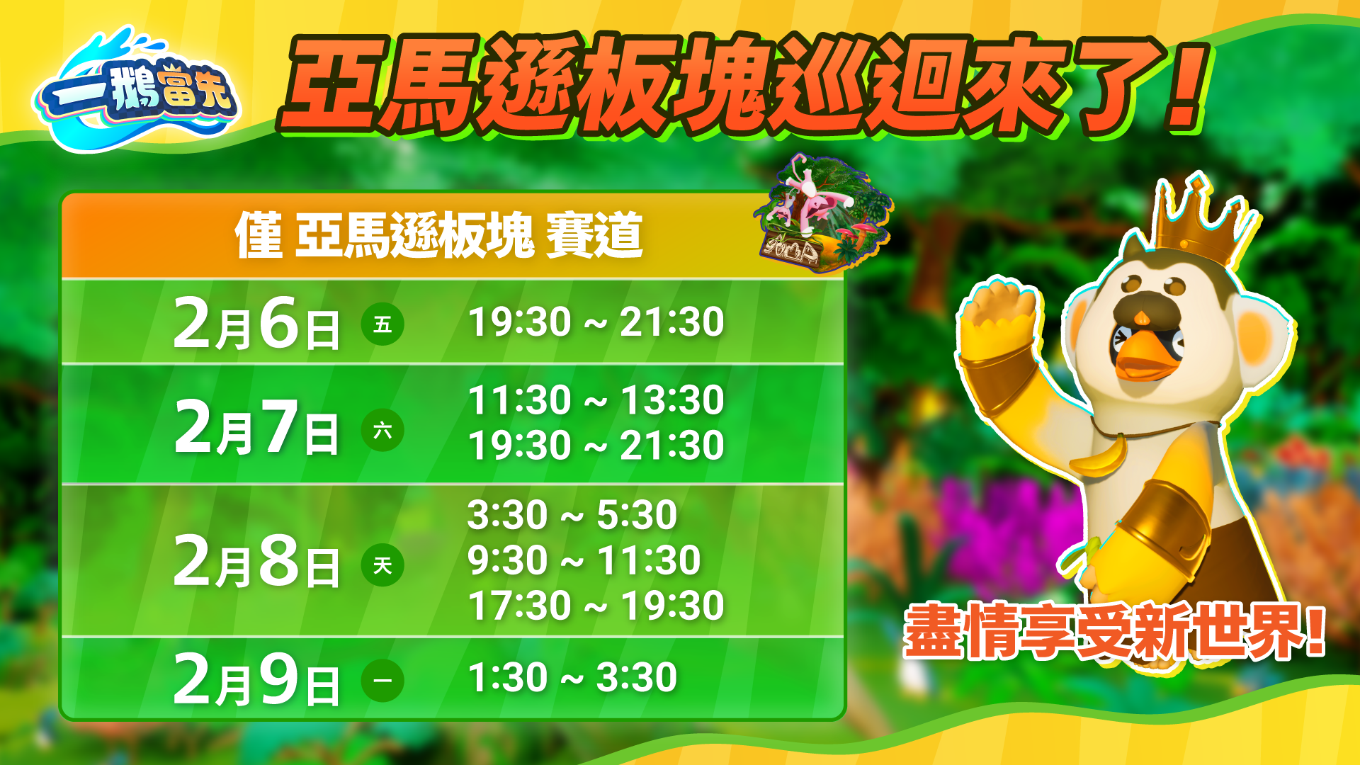 在這段特別時間內,所有活動都將設定為 「亞馬遜板塊」 賽道。