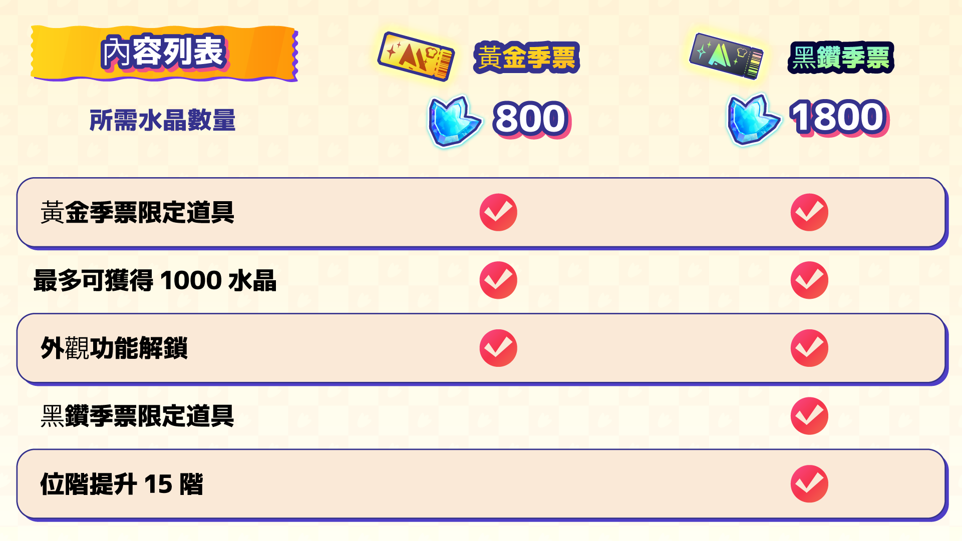 以上為依照季排名點數高低可取得之限定報酬。