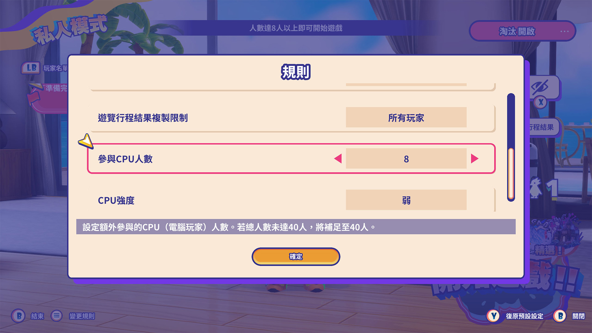 - 私人模式新增可將“複製巡迴賽結果”限制為“僅限房主”的設定